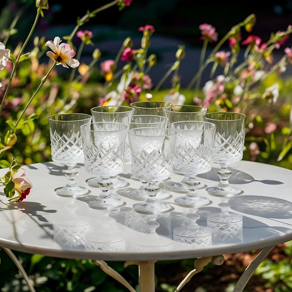 Nous proposons une sélection de verres adaptés à tous les usages : verres à vin, flûtes à champagne, verres à eau et verres à cocktails.